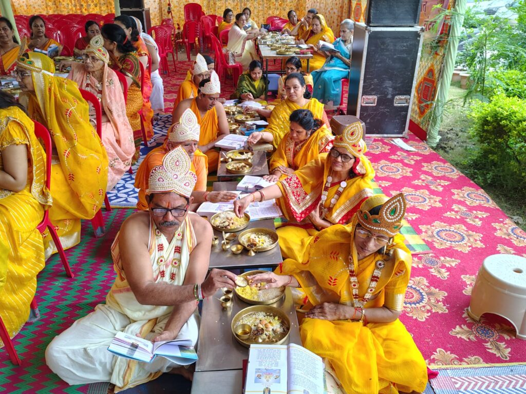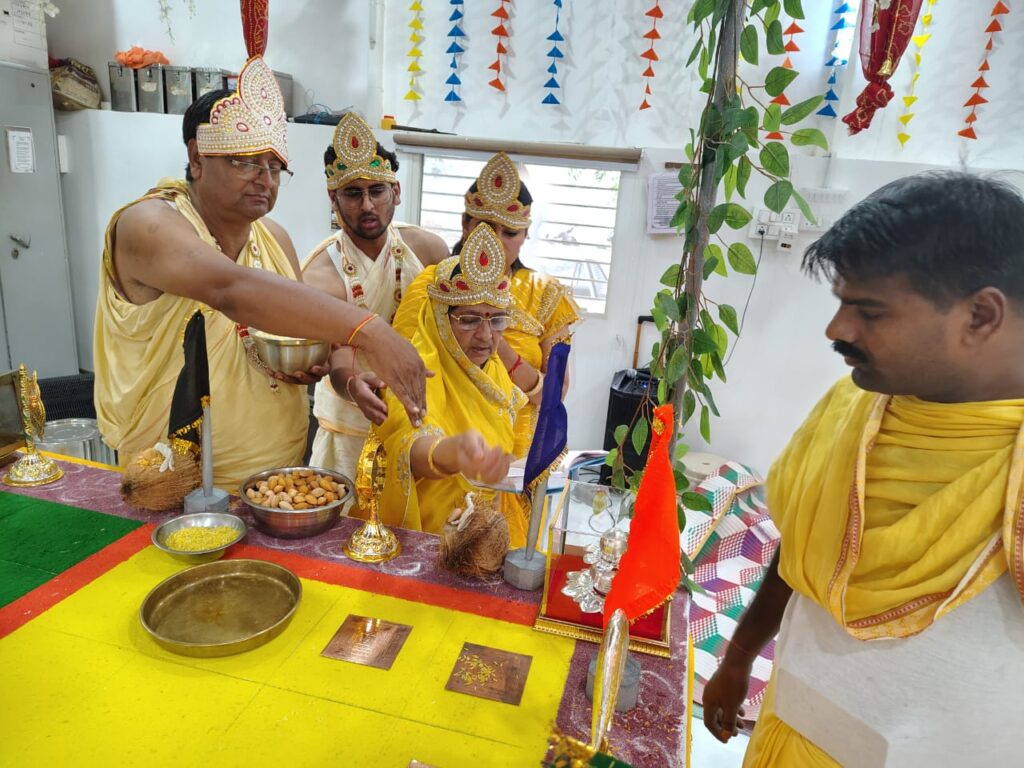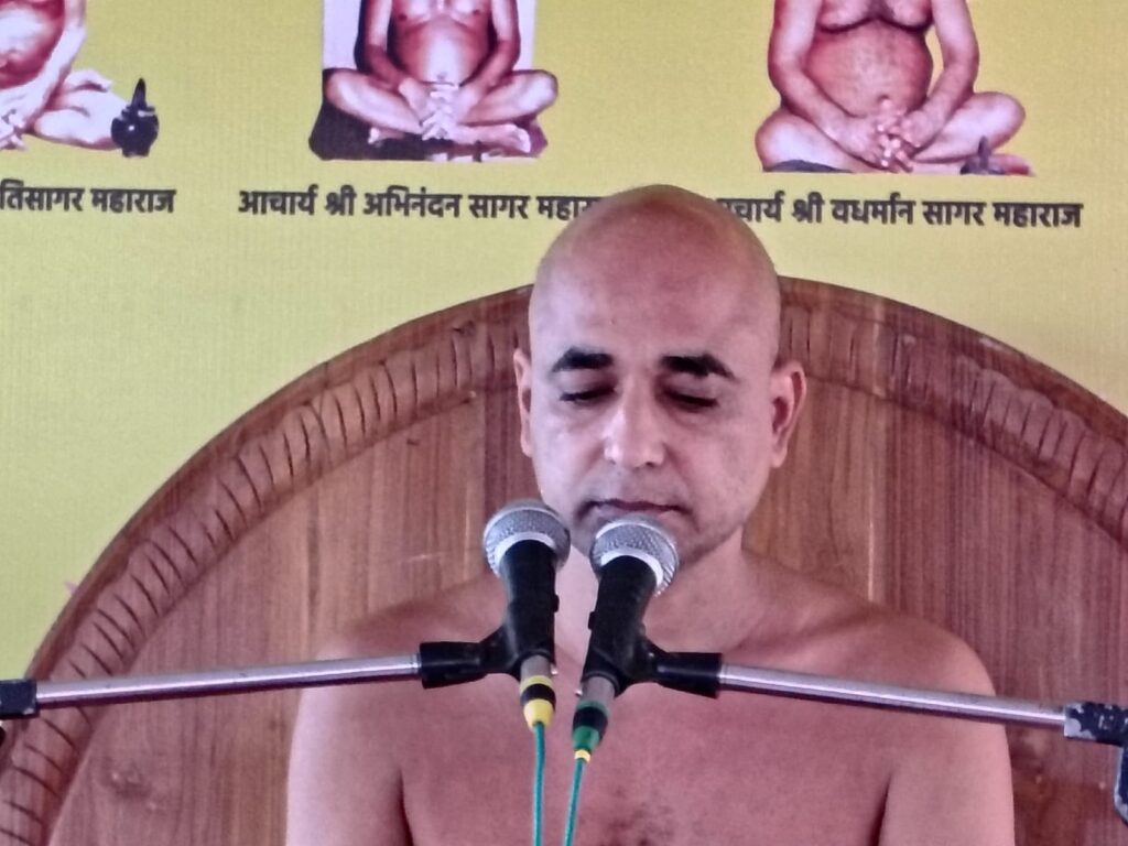 फिर अंतर्मुखी परम पूज्य पूज्य सागर जी महाराज व आर्यिका गणिनी 105 सौहार्दमति माताजी का पाद पक्षालन का सौभाग्य स्मिता प्रमोद लखावत, दिलीप अनीता जैन को और शास्त्र भेट महेंद्र ममता पहाड़िया, दिलीप अनीता जैन को प्राप्त हुआ। मुनि श्री ने धर्म सभा को संबोधित करते हुए कहां की संकल्प का जीवन में बहुत ही महत्वपूर्ण योगदान होता है। संकल्प को अपने जीवन मैं अगर आपने स्थान दे दिया तो आप बड़ी से बड़ी नैया बड़े से बड़े पड़ाव को पार कर लोगे। एक संकल्प का पालन करने के लिए ही भगवान राम वनवास गए थे। मर्यादा पुरूषोतम राम ने अपने जीवन में ये संकल्प लिया था कि हमेशा अपने माता पिता की आज्ञा का पालन करूंगा। इसलिए आप अपने जीवन में संकल्प को धारण करके बड़ी से बड़ी चुनौतियों को बिना विकल्प के पूरा कर जाओगे। भक्तामर विधान विधानाचार्य पंडित नितिन झांझरी द्वारा किया जा रहा है।