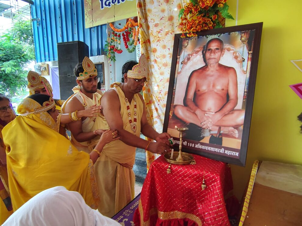 इंदौर, अंतर्मुखी 108 परम पूज्य पूज्य सागर जी महाराज के चातुर्मास धर्म प्रभावना रथ का दूसरा पड़ाव का आज दूसरा दिन हाई लिंक सिटी में बड़ी भक्ति भाव से भक्तामर महामंडल विधान से प्रारंभ हुआ। इसमें सर्वप्रथम जिनेंद्र भगवान के अभिषेक व शांति धारा का सौभाग्य आज के भक्तामर महामंडल विधान के पुण्यार्जक दिलीप अनीता यश आशिता जैन को प्राप्त हुआ। तत्पश्चात नित्य नियम पूजन के साथ भक्तामर महामंडल विधान का आज शुभारंभ हुआ। आज विधान मैं 4 काव्यों मैं 224 अर्घ पूर्ण किए गए। आचार्य अभिनंदन महाराज के चित्र अनावरण कर्ता दिलीप जी जैन रहे।