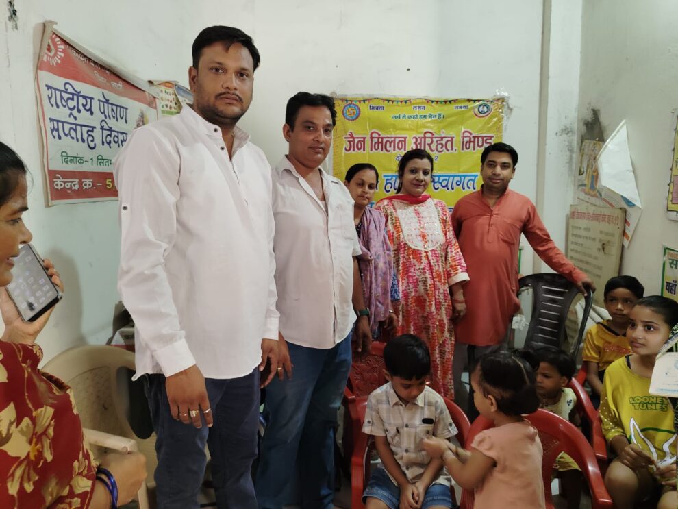 साथ ही छोटे बच्चों के अभिभावको को दस्तक अभियान के बारे में जानकारी दी गई। साथ ही छोटे बच्चो और गर्भवती महिलाओं की जांच भी गई। कार्यक्रम में लगभग 20 बच्चे एव उनके अभिभावक उपस्थित रहे। जैन मिलन अरिहंत द्वारा सभी बच्चों को टॉफी और फल वितरित किए गए। साथ ही टीकाकरण में सहयोग प्रदान किया।