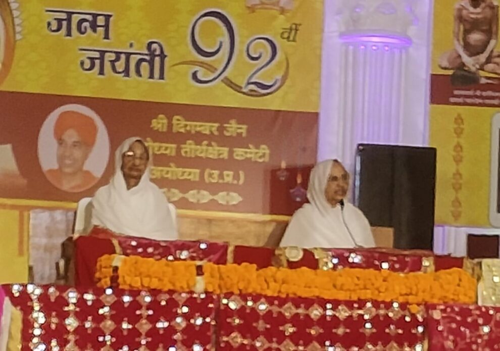 अयोध्या। गणिनी प्रमुख श्री ज्ञानमती माता जी ससंघ सानिध्य में भगवान ऋषभदेव आदि पांच तीर्थंकरों की जन्म भूमि शाश्वत तीर्थ अयोध्या में गणिनी प्रमुख माताजी का 92वें जन्मदिन और 74वें संयम दिवस के पुनीत अवसर पर शरद पूर्णिमा रत्नत्रय महोत्सव रविवार को प्रातः 6 बजे से बडी मूर्ति भगवान ऋषभदेव 31 फुट उतंग प्रतिमा जी के अभिषेक और शांतिधारा के साथ शुभारंभ हुआ। अखिल भारतवर्षीय दिगम्बर जैन युवा परिषद् के राष्ट्रीय महामंत्री उदयभान जैन जयपुर ने बताया कि प्रमुख शांतिधारा हंसमुख गांधी द्वारा की गयी। सभी मांगलिक क्रियाएं पीठाधीश स्वस्ति श्री रविंद्र कीर्ति स्वामी जी के निर्देशन में प्रतिष्ठाचार्य विजयकुमार जैन द्वारा करायी गयी। प्रातः 9 बजे से आचार्य श्री शांतिसागर जी महाराज आचार्य पदारोहण शताब्दी वर्ष के समापन के उपलक्ष्य में शांतिसागर विधान एवं मुनि श्री वीरसागर एवं मुनि श्री नेमिसागर मुनिदीक्षा शताब्दी वर्ष के उपलक्ष्य में पूजन एवं 2बजे आचार्य शांतिसागर जी महाराज पर संगोष्ठी की गयी।