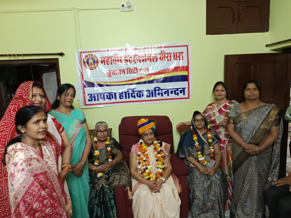 स्वागत सम्मान करते वीरा अध्यक्ष सरोज पाटनी, वीरा मंजू , वीरा राखी बडजात्या, वीरा सुनीता गंगवाल, वीरा सरला खटोड, वीरा सीमा प्रदीप काला, वीरा सविता वीर नरेश झांझरी, वीर रामावतार गोयल, वीर अजित पहाडिया, वीर तेजकुमार बडजात्या, वीर सोहलाल वर्मा, प्रवीण शारदा सेन,अनुराग, रतनलाल, सीतारानी सोनी ने स्वागत में उपस्थित रहकर सहयोग किया। वीर सुभाष पहाडिया ने धन्यवाद ज्ञापित किया।