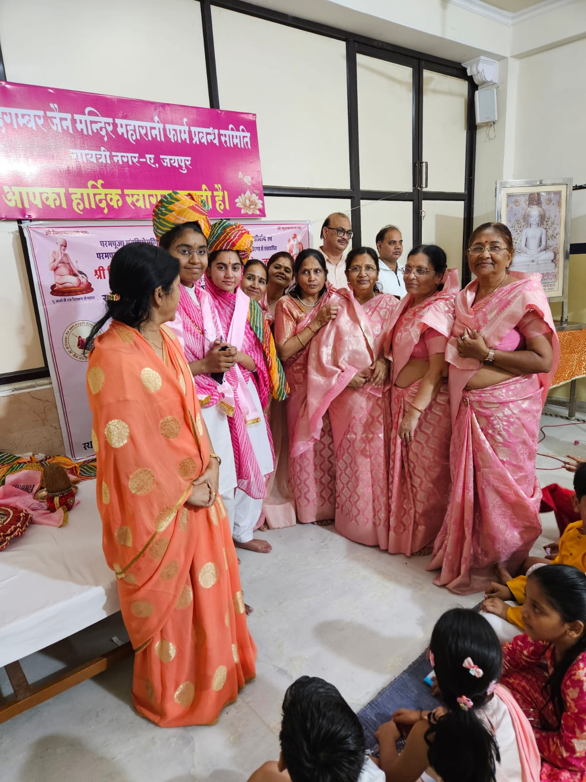पुण्यार्जकों एवं अतिथियों का सम्मान अनीता बड़जात्या, मंजू जैन सेवावाले, प्रमिला जैन, विमला जैन, किरण बिल्टी वाला, महिमा अजमेरा , सुनीता काला द्वारा किया गया। शिविर में बालबोध भाग प्रथम, द्वितीय, तृतीय तथा छह ढाला की कक्षाएं लगायी जा रही हैं। श्रमण संस्कृति संस्थान, सांगानेर से दो विदुषी देशना दीदी व दृष्टि दीदी भी आई हैं, जो प्रातः अर्हम योग व सायं काल में कक्षायें लेंगी। इस अवसर पर महारानी फार्म जैन मंदिर प्रबंध समिति के मंत्री राजेश बोहरा, उपाध्यक्ष अरुण शाह, महावीर सेवा वाले जीतेन्द्र बाकलीवाल, आलोक शाह, सुरेश जैन, कमल मालपुरा वाले, बसंत बाकलीवाल, अशोक बड़जात्या ,उदयभान जैन व अन्य गणमान्य समाज के सदस्य उपस्थित थे। बच्चों को गिफ्ट सुनील बिल्टीवाला व सुशीला गोधा परिवार द्वारा वितरित किए गए। देशना दीदी व दृष्टि दीदी सांगानेर के साथ प्रमिला जैन, अनीता बड़जात्या, किरण बिल्टीवाला, विमला जैन कक्षाएं लेंगी। आभार मंजू सेवा वाली द्वारा किया गया।सभा का संचालन अरुण शाह उपाध्यक्ष मंदिर प्रबंध समिति द्वारा किया गया।