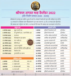 सोमवार से अगस्त का महीना शुरू हो रहा है। अगस्त में कई सारे व्रत और त्योहार पड़ रहे हैं। 12 अगस्त से 11 सितंबर तक षोडसकारण व्रत रखा जाएगा। 25 से 31 अगस्त तक श्वेताम्बर जैन समाज का पर्यूषण पर्व और 31 अगस्त से दिगम्बर जैन समाज का दशलक्षण पर्व होगा।