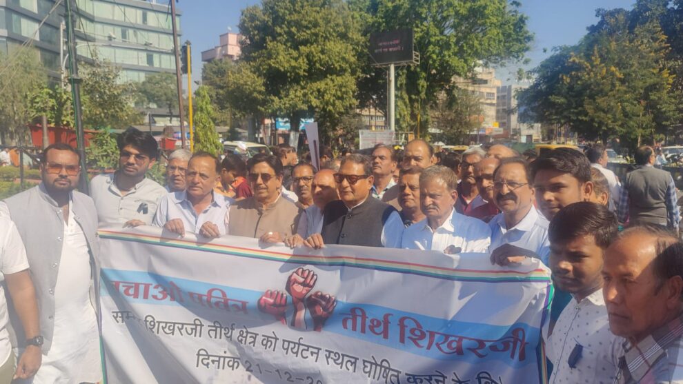 सम्मेद शिखर बचाओ : मुनि श्री सुधासागर भक्त मंडल का प्रदर्शन, इंदौर के रीगल चौराहे पर हुआ जैन समाज का प्रदर्शन