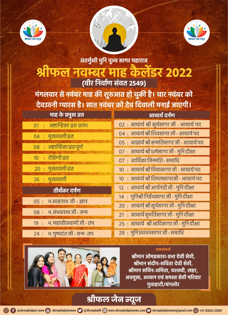 श्रीफल नवंबर माह कैलेंडर 2022