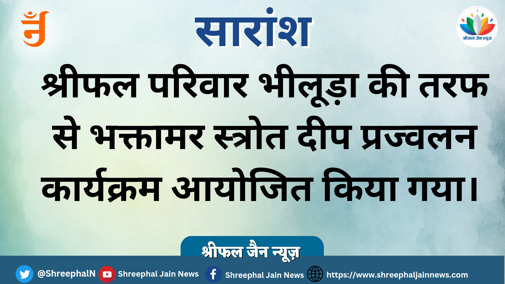 परिवार की और आयोजित इस कार्यक्रम में भक्तामर स्त्रोत दीप प्रज्वलन के पश्चात आरती प्रसाद वितरण किया गया।