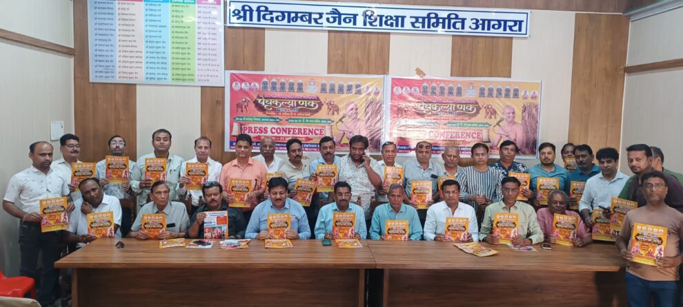 आगरा। न्यू आदर्श नगर, बल्केश्वर स्थित नवनिर्मित श्री 1008 सर्वताभद्र जिनालय में आचार्यश्री विरागसागर जी महाराज एवं आचार्यश्री विशुद्ध सागर जी महाराज के आशीर्वाद तथा उपाध्यायश्री विहसंत सागर जी महाराज ससंघ के पावन सानिध्य में 23 से 27 अप्रैल तक एमडी जैन इंटर कॉलेज ग्राउंड अयोध्या नगरी में भव्य श्री आदिनाथ जिनबिंब पंचकल्याणक प्रतिष्ठा महोत्सव एवं विश्व शांति महायज्ञ होने जा रहा है। इसी क्रम में 21 अप्रैल को हरीपर्वत स्थित एम.डी.जैन इंटर कॉलेज परिसर के नारायण भवन में श्री आदिनाथ पंचकल्याणक प्रतिष्ठा महोत्सव समिति द्वारा भव्य पत्रिका विमोचन एवं प्रेस वार्ता का आयोजन किया गया। कार्यक्रम के दौरान विधिवत रूप से महोत्सव की आधिकारिक पत्रिका का विमोचन किया गया। पत्रिका विमोचन करते हुए समिति पदाधिकारियों ने महोत्सव की विस्तृत रूपरेखा साझा की और आयोजन की विशेषताओं पर प्रकाश डाला। प्रेसवार्ता में मुख्य संयोजक मनोज जैन बाकलीवाल ने बताया कि यह महोत्सव 23 से 27 अप्रैल तक अत्यंत भव्य एवं धार्मिक गरिमा के साथ होगा। जिसमें जैन परंपरा अनुसार पंचकल्याणक की सभी मांगलिक क्रियाएं विधि पूर्वक आयोजित की जाएंगी।