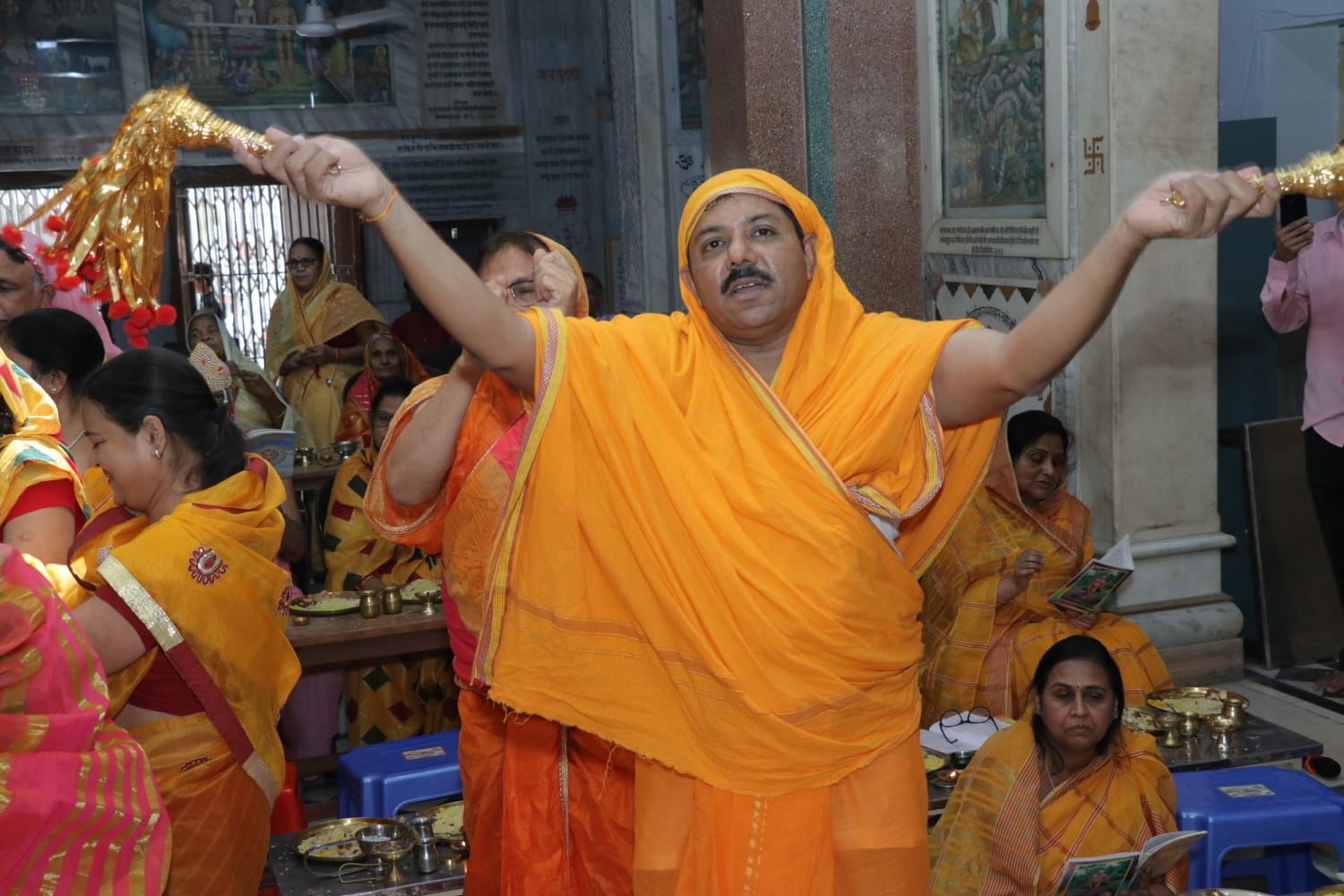 ये कार्य करने का सौभाग्य हीरालाल जैन बड़जात्या परिवार व पंकज जैन भूंच परिवार को मिला। इस अवसर पर श्री भक्तामर महामडल विधान का भव्य आयोजन हुआ। जिसमें भक्तों ने विधानाचार्य शुभम भैया के कुशल निर्देशन में मांडले पर मुख्य कलश ममता जैन बाकलीवाल ने व चार कलश क्रमश: प्रभा प्रीति जैन बड़जात्या, संगीता जैन बाकलीवाल, प्रिया जैन भूंच व शैफाली जैन को मिला। इससे पूर्व मुख्य शांतिधारा मिलिन्द जैन व अन्य कलशों से पवन जैन संजीव जैन व पंकज जैन को करने का सौभाग्य मिला। इसके बाद भक्तों ने मंत्रोच्चारण के साथ श्रीजी के समक्ष 48 दीपक एवं अर्घ्य समर्पित कर श्री भक्तामर महामंडल विधान की मांगलिक क्रियाएं संपन्न कीं।