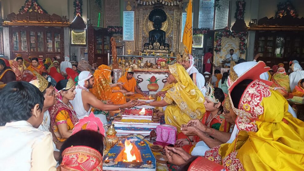 आगरा। शालीमार एनक्लेव, कमला नगर स्थित श्री पार्श्वनाथ दिगम्बर जैन मंदिर में चल रहे श्री सिद्धचक्र महामंडल विधान एवं विश्वशांति महायज्ञ का बुधवार को मंगलमय समापन हुआ। 28 अक्टूबर से 5 नवंबर तक इस पावन विधान के दौरान भक्तों ने आराधना, भक्ति और शांति का अनुपम संगम देखा। समापन दिवस पर प्रातः 7 बजे से 11 बजे तक श्रीजी का पूजन, विधान एवं विश्व शांति महायज्ञ की मांगलिक क्रियाएं की गईं। इस दौरान मंदिर परिसर में श्रद्धालुओं का विशाल जनसमूह उपस्थित रहा। जिन्होंने मंत्रोच्चारण और भक्ति गीतों के साथ अपने जीवन में शांति और सद्भाव का संकल्प लिया। विधान के दौरान ब्रह्मचारी अभिषेक भैया के सान्निध्य एवं संगीतकार अहिंसा जैन द्वारा प्रस्तुत भक्ति-संगीत ने वातावरण को पूर्णतः भक्तिमय बना दिया।