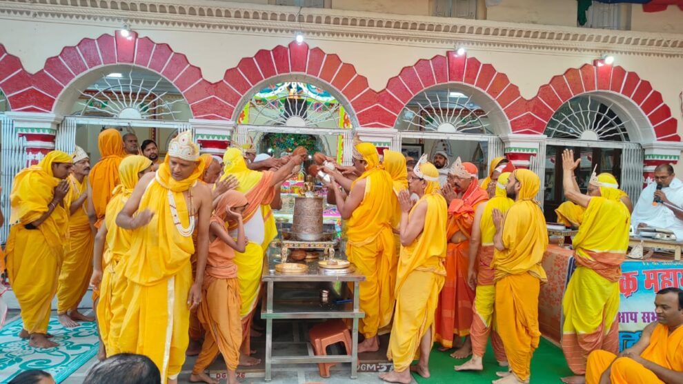 श्री आदिनाथ दिगंबर जैन बड़ा मंदिर मालवीय रोड में आठ दिवसीय अष्टान्हिका पर्व के तहत आयोजित श्री सिद्धचक्र महामंडल विधान विश्वशांति महायज्ञ की पूजा का समापन रविवार 24 मार्च 2024 को हुआ। पढि़ए प्रणीत जैन की रिपोर्ट…