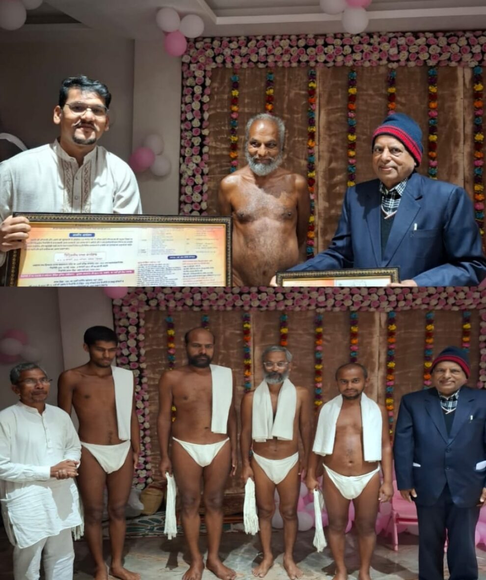 भोपाल। यहां के लालघाटी जैन मंदिर में विराजित आचार्य श्री विद्यासागर जी महाराज के शिष्य मुनि श्री प्रमाण सागर जी महाराज ससंघ को सोमवार सुबह श्री दिगंबर जैन सिद्धक्षेत्र (रेशंदीगिरि) नैनागिरि, बकस्वाहा (छतरपुर) में होने वाले त्रि-दिवसीय कार्यक्रम तथा नैनागिरि पारस समवशरण परिक्षेत्र की परिक्रमा के शुभारंभ संबंधित आमंत्रण पत्रिका को ट्रस्ट कमेटी नैनागिरि के अध्यक्ष आईएएस सुरेश जैन ने भेंटकर श्रीफल अर्पित किया और आशीर्वाद लिया।