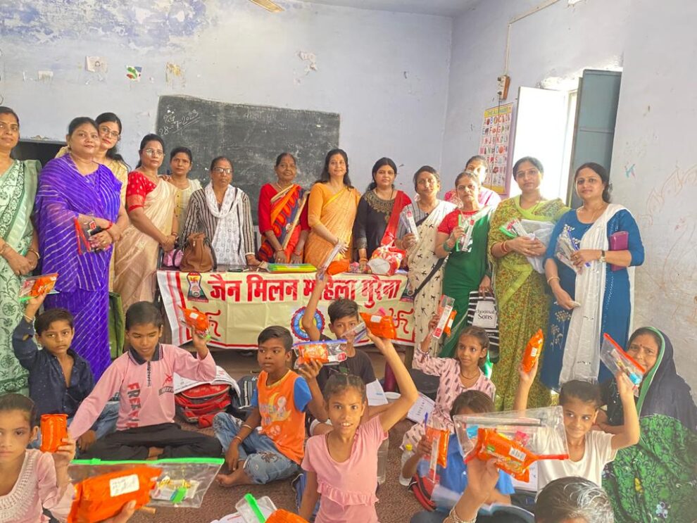 अध्यक्ष जुली जैन ने टीचर्स से सरकारी सुविधाओं के बारे में पूछा तो पता चला कि सरकार की तरफ से सभी बच्चों को किताबें व भोजन दिया जा रहा है। इस दौरान संगठन की कोषाध्यक्ष शिक्षा जैन ने बच्चों को मन लगाकर पढ़ाई करने की सीख दी। जैन मिलन की सदस्यों ने कहा कि बच्चों को उपहार देकर उन्हें प्रसन्नता हो रही है। इस अवसर पर केंद्रीय संयोजिका भावना जैन, सरिता जैन, अध्यक्ष जूली जैन, मंत्री शिल्पी जैन, कोषाध्यक्ष शिक्षा जैन, बबिता जैन, उषा जैन, किरण जैन, प्रीति जैन, अरुणा जैन, पारुल जैन, श्वेता जैन वंदना आदि मौजूद रहीं।