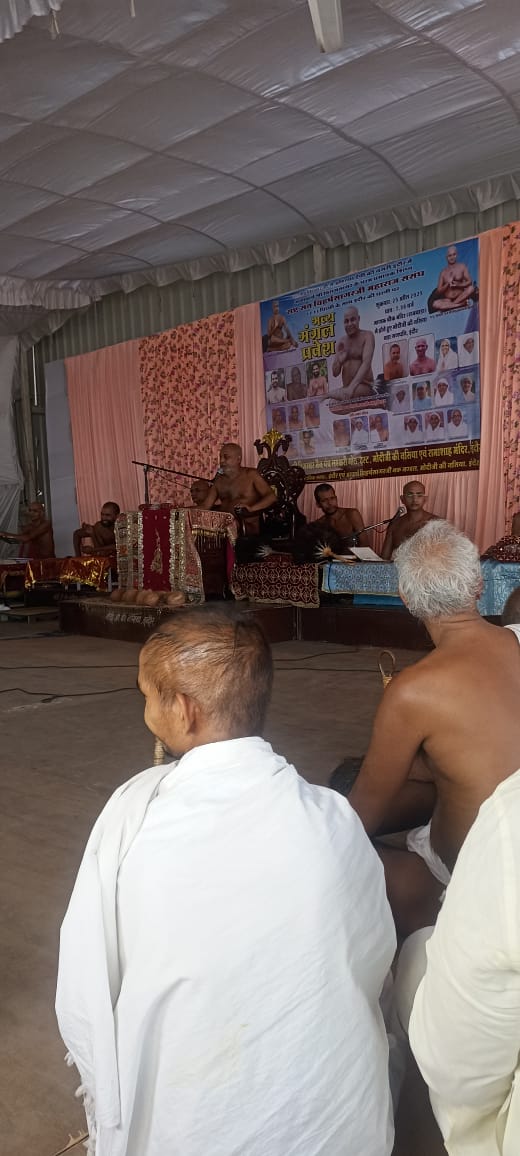 जगह-जगह आचार्यश्री का पाद प्रक्षालन किया गया। नगर में पहले से ही विराजमान मुनिश्री आदित्य सागरजी ससंघ का भी इस शोभायात्रा में आचार्यश्री से मिलन हुआ। कुल 71 पिच्छी धारियों से वातावरण साक्षात महाकुंभ की अनुभूति से ओतप्रोत हो गया। इसके पश्चात आचार्यश्री ने बड़ा गणपति स्थित नसियाजी मंदिर में प्रवेशकर श्रीजी के दर्शन किए और कार्यक्रम धर्मसभा में परिवर्तित हो गया। आचार्य श्री के मंगल प्रवचन संपन्न हुए।