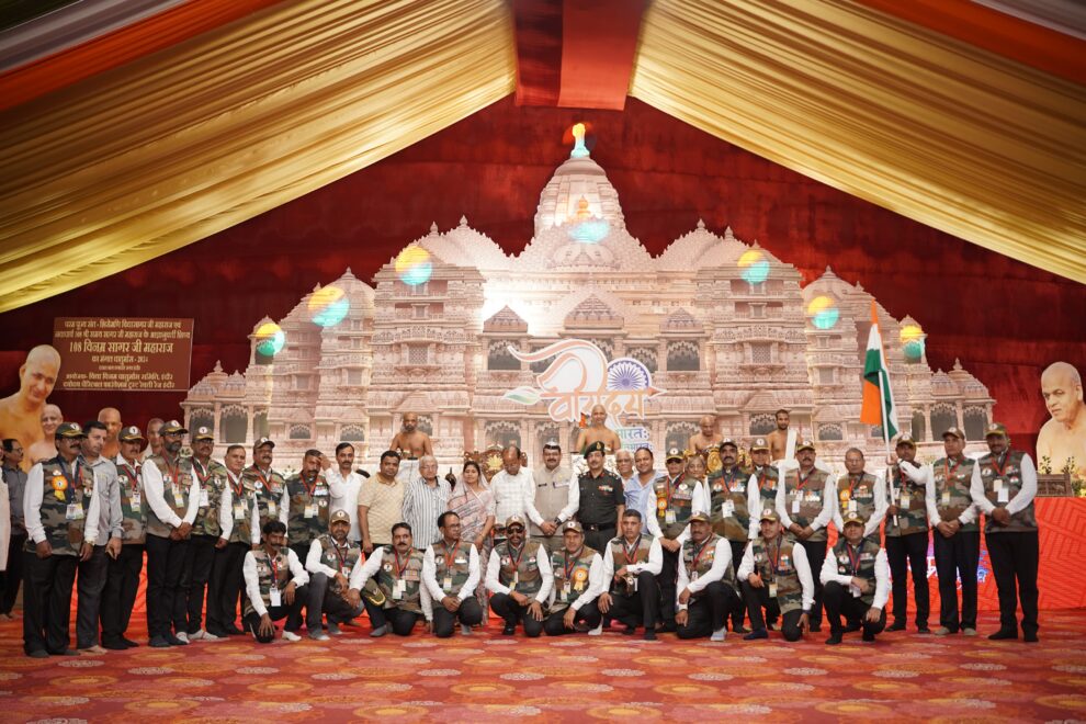 छत्रपति नगर के दलाल बाग में मुनि श्री विनम्र सागर जी महाराज ससंघ के पावन सानिध्य में एक दो दिवसीय अनूठे वीरोदय भारत: प्रतिभारत: कार्यक्रम के अंतर्गत करीब 65 सैनिकों का सम्मान किया गया। मुख्य सम्मान था , परमवीर चक्र विजेता योगेंद्र सिंह यादव का। इस अवसर पर मुनि श्री के प्रवचन भी हुए। पढ़िए यह विशेष रिपोर्ट…