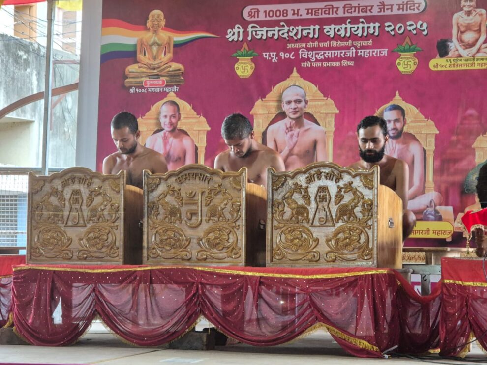 पट्टाचार्य विशुद्धसागर जी महाराज के शिष्य मुनि श्री सारस्वत सागर जी महाराज,मुनि श्री जयंत सागर जी महाराज, मुनि श्री सिद्ध सागर जी महाराज और क्षुल्लक श्री श्रुतसागर महाराज 1008 भगवान महावीर दिगंबर जैन मंदिर में विराजमान हैं। यहां पर नित्य पूजा के अलावा मुनिराज के प्रवचन हो रहे हैं। इसका लाभ यहां के समाज बंधु और धर्मानुरागी जन ले रहे हैं। नांद्रे (महाराष्ट्र ) से पढ़िए, अभिषेक अशोक पाटिल की खबर…