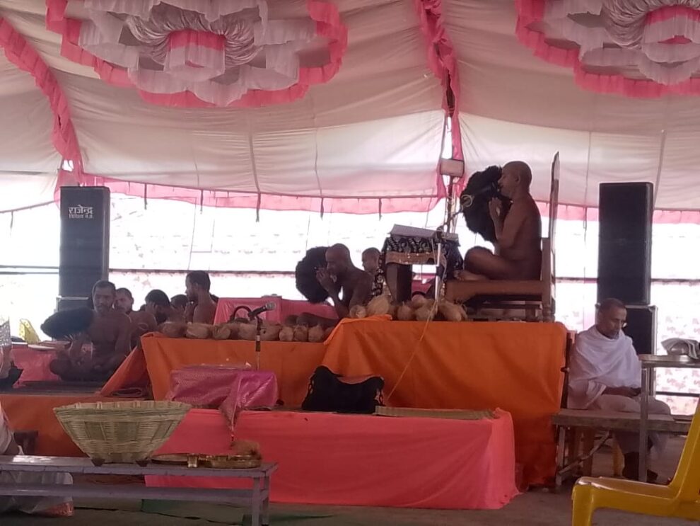 आचार्य श्री ने धर्मसभा को संबोधित करते हुए कहा कि योग निरोध क्यों किया जाता है? आचार्य श्री ने बताया कि आत्मा विकास शील है। जैन आगम जिन शासन जैन सिद्धांत आत्मा को नहीं स्वीकारता अंतरात्मा ही परमात्मा होता है। जीव अनादि विद्या के बस हुआ मिथ्या का सेवन कर संसार का रस लेता रहा और मिथ्यात्व के तीन टुकड़े कर दिए। गुणस्थान के बारे में बताया कि कौन से गुण स्थान में क्या और कैसे मिलता है। आगे बताया कि मुनि को मुनि बनना चाहिए मुनीम नहीं बनना चाहिए। अपनी आत्मा की विशुद्धि के लिए लाभ कषाय परिग्रह छोड़ना पड़ेगा। अपने संघों में होने से मोक्ष नहीं होता निःसंघ होने से मोक्ष होता है। इस देह से भी मोह हटाना पड़ेगा जो गृहस्थ और मुनि धन धन में लिप्त है। वो अपनी ही हत्या कर रहे है। संसार में जो कीमत विशुद्धि की है वो पैसे की भी नहीं है। जैन मुनि ने वो विशुद्धि है और वो ही भगवान बनते हैं। आचार्य श्री ने कहा कि शब्द ब्रह्म है साधन है। एक पाषाण की प्रतिमा अंक न्यास, विधि न्यास किया गया। धार्मिक, पूजन आदि के काल में मौन रखना चाहिए। भक्तामर आदि जो भी शास्त्र है वह एक शब्द ब्रह्म ही है।