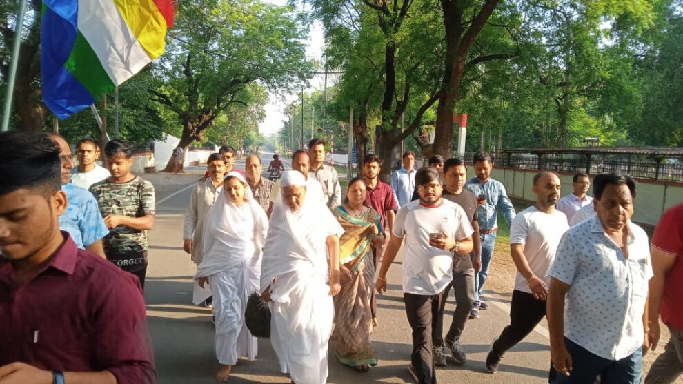 मुरैना। जैन साध्वी गणिनी आर्यिका स्वस्तिभूषण माताजी ससंघ का श्री जैन तीर्थक्षेत्र सोनागिर के लिए मंगल विहार चल रहा है। पूज्य आर्यिका संघ का सोमवार आठ मई को सुबह डबरा में मंगल प्रवेश होगा । सोनागिर जी में रविवार 14 मई को मंगल प्रवेश होने की पूर्ण सम्भावना है। पूज्य आर्यिका संघ के विहार में सम्मिलित सुनीत जैन ठेकेदार ने जानकारी देते हुए बताया कि गणिनी आर्यिका श्री लक्ष्मीभूषण माताजी एवं स्वस्तिधाम प्रणेत्री गणिनी आर्यिका श्री स्वस्तिभूषण माताजी ससंघ का मंगल पद विहार ग्वालियर से श्री दिगम्बर जैन सिद्धक्षेत्र सोनागिर की ओर चल रहा है। पूज्य आर्यिका संघ के विहार में प्रतिदिन मुरैना, लश्कर, ग्वालियर, मुरार, डबरा, राजेश जैन लाला मित्र मंडल के सदस्यगण पहुँचकर सहयोग प्रदान कर रहे हैं ।