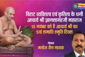 पट्टाचार्य ज्ञानसागरजी महाराज के 5 वां समाधि स्मृति दिवस 15 नवंबर को मनाया जाएगा। इस अवसर पर मुरैना से पढ़िए मनोज जैन नायक का यह विशेष आलेख… मुरैना। चंबल...