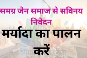 यापुरा, उज्जैन में 500 वर्ष प्राचीन जैन मंदिर जी के बाहरी प्रांगण को निगम द्वारा सड़क चौड़ीकरण के लिए अवैध घोषित कर तोड़ने की कार्रवाई की जा रही है। विश्व जैन...