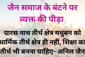 नगर के अनिल कुमार जैन ने पीड़ा व्यक्त की है कि समाज की सबसे बड़ी सच्चाई ये है कि हम कई टुकड़ों में बांट दिए गए हैं या बंटे हुए है।अखिल भारतीय या अखिल राज्य...