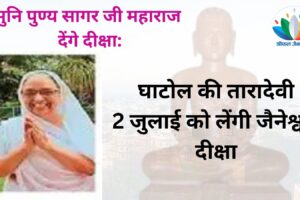 घाटोल की रहने वाली 77 वर्षीय सप्तम प्रतिमाधारी श्राविका तारादेवी उंकावत 2 जुलाई को मध्यप्रदेश के सिद्धक्षेत्र सोनागिरि में मुनि पुण्य सागर महाराज के सान्निध्य...