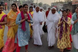 हजारों किलोमीटर पैदल चल कर आईं जैन साध्वी आर्यिका विभा श्री माताजी के आगमन पर जैन समाज की महिलाएं-पुरुष और बच्चे सभी सुबह बायपास मोड़ पर अपनी भक्ति और श्रद्धा...