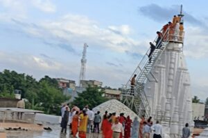 कार्तिक पूर्णिमा के अवसर पर श्री चन्द्रप्रभु दिगम्बर जैन मन्दिर के शताब्दी वर्ष के मौके पर धरियावद के ईष्ट देव मूलनायक भगवान चंद्र प्रभु स्वामी के शिखर पर...