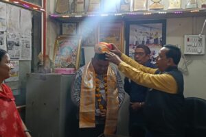 मुनि भक्त समर कंठाली का मां अन्नपूर्णा रोगी सेवा संस्थान ने अभिनंदन किया : आचार्य वर्धमान सागरजी ससंघ के सान्निध्य में पंचकल्याणक में सौधर्म इंद्र बने थे