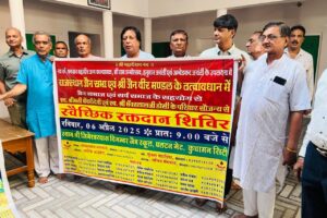 6 अप्रेल को स्वैच्छिक रक्तदान शिविर के पोस्टर का विमोचनः जियो और जीने दो की पालना होगी-माताजी