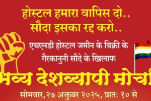 एचएनडी हॉस्टल जमीन बिक्री के सौदे के खिलाफ देश व्यापी मोर्चा 27 अक्टूबर को होगा। एचएनडी हॉस्टल जमीन की बिक्री के गैरकानूनी सौदे के खिलाफ आचार्यश्री गुप्तिनंदी...