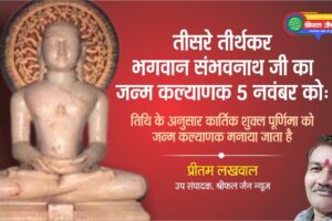 जैन धर्म के तीसरे तीर्थंकर भगवान संभवनाथ जी का जन्म कल्याणक इस वर्ष 5 नवंबर को मनाया जाएगा। तिथि के अनुसार उनका जन्म कल्याणक कार्तिक शुक्ल पूर्णिमा के दिन आता...