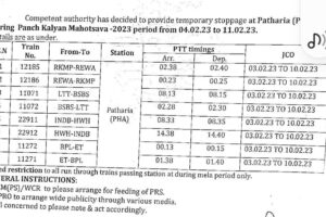 सारांश पथरिया में जैन समाज का महाकुंभ देखते हुए रेल मंत्री ने विशेष व्यवस्था की है । यहां से गुजरने वाली रेलों का यहां विशेष स्टोपेज होगा । विस्तार से पढ़िए...