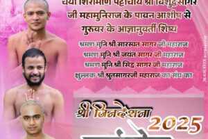 पट्टाचार्य विशुद्धसागर महाराज जी के शिष्य सारस्वत सागर जी, जयंत सागर जी, सिद्ध सागर जी और श्रुतसागर महाराज जी के चरणरज से नांद्रे की भूमि पवित्र होगी। मंगल...