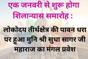 संत शिरोमणि आचार्यश्री विद्यासागर जी महाराज के शिष्य निर्यापक श्रमण मुनिपुंगवश्री सुधासागर जी महाराज एवं क्षुल्लक श्री गम्भीरसागर जी महाराज ससंघ का 30 दिसम्बर...