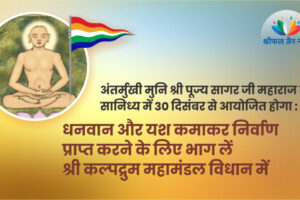 श्री कल्पद्रुम महामंडल विधान समिति की ओर से आचार्य श्री अभिनंदन सागर महाराज जी से दीक्षित, आचार्य श्री वर्धमान सागर महाराज से शिक्षित अंतर्मुखी मुनि श्री पूज्य...