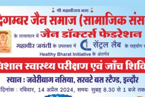 महावीर जन्म कल्याणक के अवसर पर दिगंबर जैन समाज सामाजिक संसद और जैन डाक्टर्स फेडरेशन द्वारा सेंट्रल लेब के सहयोग से एक निशुल्क विशाल स्वास्थ्य परीक्षण शिविर का...
