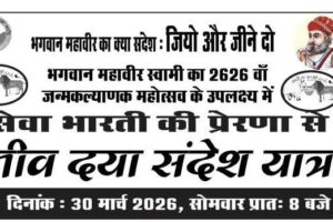 भगवान महावीर स्वामी जी के 2626वें जन्म कल्याणक महोत्सव के उपलक्ष्य में सेवा भारती की प्रेरणा से जीवदया संदेश यात्रा का आयोजन किया जा रहा है। इस यात्रा का...