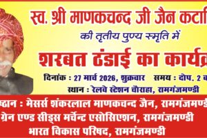 रामगंजमंडी में आदिनाथ मंदिर प्रतिष्ठा महोत्सव के प्रथम दिन विविध धार्मिक अनुष्ठान, ध्वजारोहण और आचार्य मणिप्रभ सुरीश्वर के प्रवचन हुए। पूर्व विधायक प्रहलाद...