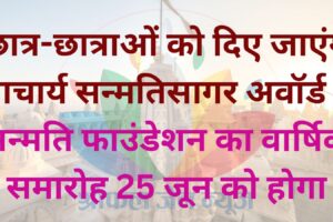 जैसवाल जैन उपरोचियां समाज की सेवाभावी संस्था सन्मति फाउंडेशन का वार्षिक समारोह एवं छात्र-छात्राओं को उत्कृष्टता पुरस्कार वितरण समारोह 25 जून को होने जा रहा है।...