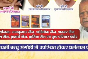 अंतर्मुखी मुनि पूज्य सागर महाराज एवं क्षुल्लक अनुश्रमण सागर महाराज के सानिध्य में श्री दिगम्बर जैन नव ग्रह ग्रेटर बाबा परिसर में 30 दिसंबर 2023 से 7 जनवरी तक...