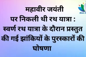 दिगंबर जैन समाज द्वारा 3 अप्रैल को महावीर जयंती के दिन स्वर्ण रथ यात्रा कांच मंदिर से लेकर राजवाड़ा जवाहर मार्ग होते हुए वापिस कांच मंदिर तक निकाली गई थी। इस...
