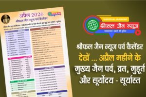 अप्रैल महीने के मुख्य जैन पर्व, व्रत, मुहूर्त और सूर्योदय – सूर्यास्त आप हमारे श्रीफल जैन पर्व कैलेंडर में देख सकते हैं। प्रस्तुति संपादक रेखा संजय...