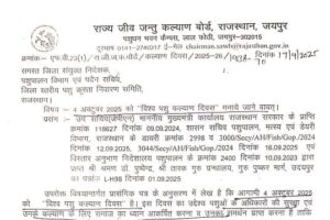 राज्य सरकार ने आगामी 4 अक्टूबर को विश्व पशु कल्याण दिवस राज्यभर में मनाने के लिए दिशा-निर्देश जारी किए हैं। इस अवसर पर स्कूलों, कॉलेजों और विभागीय संस्थाओं में...