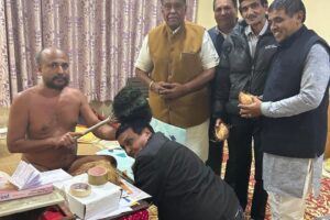 अंतर्मुखी मुनि श्री पूज्य सागर महाराज का पावन संदेश लेकर श्रवणबेलगोला पहुंचे इंदौर के श्रावकों ने जगद्गुरु स्वस्तिश्री चारुकीर्ति भट्टारक महास्वामीजी को श्रीफल...
