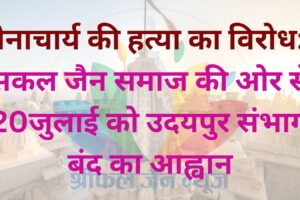 राजस्थान समग्र जैन युवा परिषद् के अध्यक्ष जिनेन्द्र जैन ने कर्नाटक में प्रसिद्ध श्रमण श्री कामकुमार नंदी मुनि महाराज की बर्बर हत्याकांड में आवश्यक कार्यवाही कर...