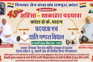 रामपुरा स्थित श्री दिगंबर जैन बड़ा मंदिर से केशवराय पाटन पदयात्रा जाएगी। यह पदयात्रा अहिंसा और शाकाहार के मूल्यों को बढ़ावा देने के लिए आयोजित की जाती है।...