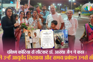 दक्षिण कोरिया से लौटकर डॉ. आस्था जैन ने कहा - : हमने उन्हें आयुर्वेद सिखाया और समय प्रबंधन उनसे सीखा