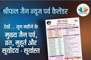 जून महीने के मुख्य जैन पर्व, व्रत, मुहूर्त और सूर्योदय – सूर्यास्त आप हमारे श्रीफल जैन पर्व कैलेंडर में देख सकते हैं। प्रस्तुति संपादक रेखा संजय...