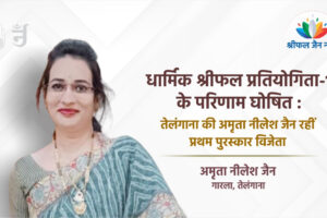 श्रीफल जैन न्यूज परिवार की ओर से आयोजित धार्मिक श्रीफल प्रतियोगिता-1 के विजेताओं की घोषणा मंगलवार को अंतर्मुखी मुनि श्री पू्ज्यसागर जी महाराज के मुखारविंद से...