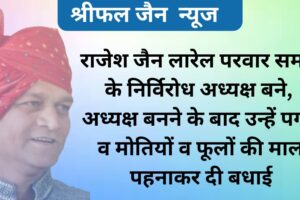 श्री चंद्रप्रभु दिगंबर जैन परवार समाज धार्मिक एवं पारमार्थिक ट्रस्ट के अध्यक्ष पद के लिए श्री राजेश जैन लॉरेल को वर्ष 2023-25 तक के लिए निर्विरोध अध्यक्ष चुना...
